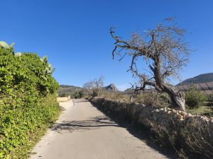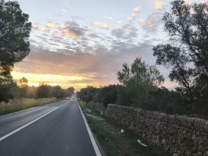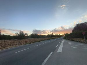 Ich fange den Tag Mal mit dem Moment an, wo ich von der Fähre gerollt bin. Wirklich Nacht und Schlaf habe ich ja nicht bekommen. Ich bin also runter zum Laderaum und habe mich auf mein Bike gesetzt. Jetzt ging es los an der Küste. Mein Navi hat mir gesagt das es ca. 35km sein sollen. Die fahrt ging um 6Uhr los und die Sonne war noch nicht Mal aufgegangen. Alles war dunkel und bis auf ein paar Jogger war niemand unterwegs. Ich fuhr immer am wasser. Erstens war da ein gut ausgebauter Radweg und zweitens hatte ich schon mal Lust mir den Ballermann anzusehen, solange hier noch keine nervigen Menschen sind. Es dauerte eine ganze Weile bis ich am Ballermann ankam. Es war von den Läden wirklich so wie ich dachte. Es tauchten Namen wie Franks Wurstparadies, oder Brathahnjens auf. Ich weiß nicht wer schon mal am Tag in Hamburg über den Kiez gelaufen ist, aber ein bisschen soein Gefühl machte das bei mir. Alles etwas ranzig und auf Party ausgelegt, aber ohne Party und Menschen tot und hässlich. Naja. Es ging dann ins Landesinnere. Und nicht nur das. Es ging auch gut ein paar Höhenmeter hoch. Immer wieder schlängelte sich die Straße hoch und ein bisschen wieder runter, aber hauptsächlich hoch. Langsam ging die sonne auf und es war ein wunderschöner anblick, wie alles in so orange und Rottöne gehüllt war und Rechts und links Felder mit dieser roten Erde und alles mediterran. Ich merkte aber langsam auch wie krass fertig ich war und die Strecke nahm einfach kein ende. Ich war inzwischen schon weiter als 40km gefahren. Der Umweg an der Küste war wohl mehr als ich dachte. Ich konnte zum Glück schon zwischen 9:30 und 10 einchecken. Gegen kurz nach 9 hielt ich noch an einem Supermarkt in der kleinen Stadt Llucmajor an. Es war gar nicht so einfach den zu finden, weil alles Einbahnstraßen waren und in der Stadt ein großer Markt/Flohmarkt war, so das man in vielen Straßen nicht fahren konnte. Nicht fahren ist scheiße. Darum habe ich natürlich versucht die Straßen zu umfahren. Im gegenverkehr fahren war ich ja inzwischen geübt. Im Supermarkt holte ich mir essen und trinken und Snacks. Ich wollte heute nicht mehr aus dem Haus, bzw. Nicht mehr vom hof. Vom Ort aus waren es nur noch ca. 3km. Dann stand ich vor einem großen Stahltor. So kenne ich es aus meinen Spanienerfahrungen. Alles verriegelt und versammelt. Die Leute habe hier scheinbar vor irgendetwas Angst. Mir wurde das Tor aufgemacht und dann traf ich Ester. Ihr gehört der Hof und das land. Es war ein riesiges Grundstück und ihre Mutter wohnte im Haus ein Stückchen von ihrem Haus weg. Ich fragte Ester was es mit diesen großen Zäunen und Stacheldraht auf sich hat. Sie hat nicht ganz verstanden was ich meinte, aber als ich ihr sagte, das es z.b. in Schweden kaum Zäune gibt, verstand sie und meinte sie weiß auch nicht. Das macht man hier so. Und als ich fragte ob es so viel Kriminalität gibt, sagte sie nein. Scheinbar hatte sie nie drüber nachgedacht. Vielleicht ist es hier wirklich einfach normal. Ich packte meine Sachen in mein Zimmer und merkte das irgendwie meine Bauchtasche mit meinem Reisepass und meinem Lieblingsmesser und kopflampe, Schleifsteine und und irgendwie nicht da ist. Ich konnte mich auch nicht dran erinnern wo sie sein könnte. Das letzte Mal wo ich mich erinnern konnte, war in dem Supermarkt. Also musste ich total kaputt nochmal losfahren und als ich ankam erinnerte ich mich das ich sie in ein Schließfach am Eingang getan hatte. Ich holte also den Schlüssel aus der Tasche, nahm die Tasche raus und fuhr zurück. Hier auf dem Hof hatte ich den Raum, eine Außenküche und ein Außenbadezimmer. Dazu hatte Ester noch eine kleine Ecke mit 2 liegen unter einem Baum eingerichtet. Mit Lichterketten, die abends angingen. Ich legte mich auf eine Liege und merkte wie mein ganzer Körper runterfuhr und der Stress gefühlt aus mir raus floss. So eine krasse Ruhe habe ich schon lange nicht mehr gespürt. Man hörte gar nichts nur ein Windspiel aus Bambusohren was leise Töne machte. Dazu die Wärme und die Sonne die leicht zwischen den Blättern durchstrahlte. Ich habe total kaputt rumgelegen, einfach die extreme Ruhe genossen und Stress abgeworfen. Ab und zu war ich im Garten und ab und zu lag ich auf dem Bett Rum. Geschlafen habe ich aber nicht. Nur so vor mich hin existiert. Gegen 21:00 bin ich dann total fertig ins bett gegangen und sofort eingeschlafen.
