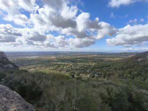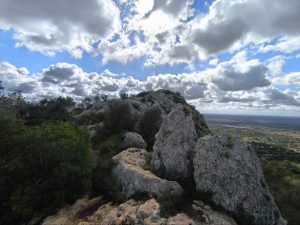 Heute war ein echt entspannter Tag. Meine Stimmung war echt viel besser als die vorherigen Tage. Ich hab ausgeschlafen, bin dann aufgestanden und habe langsam angefangen zu packen. Ester hat das scheinbar mitbekommen und gefragt ob sie schonmal die Bettwäsche bekommen kann. Ich habe sie ihr gegeben und wir haben uns eine ganze Weile unterhalten. Ich hatte ihr schon gesagt das ich vorhabe auf den großen Berg nebenan zu klettern und sie hat mir einen googlestandort geschickt, wo ich an den Berg rankomme. Sie hat mir auch gesagt warum der andere Berg eingezäunt ist. Da wurde mal irgendein Gestein abgebaut und der ist in Privatbesitz. Der große daneben allerdings nicht. Ich habe also alles fertig gemacht, gefrühstückt, das Zimmer frei geräumt und mein Gepäck vor die Tür gestellt, damit Ester schon mal das Zimmer fertig machen kann. Ich konnte aber meinen Kram bei ihr stehen lassen und mit unbepacktem Fahrrad zum Berg. Da begann der Weg mit einem unbefestigten Trampelpfad. Vorbei an wilden Olivenbäumen und riesigen katusfeigenbäumen. Es waren schon keine normalen Kakteen. Sie hatten einen richtig fetten Stamm und obendran wuchsen diese „Ohren“ mit den Früchten dran. Das letzte Stück musste ich dann klettern und teilweise von Felsen zu Felsen springen. Ich hatte schon die ganze Zeit Stimmen gehört und als ich oben ankam, kamen auch schon ein paar Spanier die auch auf den Berg geklettert waren. Der eine kam aus Valencia und die anderen von Mallorca. Ob Valencia jetzt schön ist oder nicht konnte man nicht rausfinden, weil die sich gegenseitig geärgert haben und jeder sagte das das Zuhause des anderen hässlich ist. Ich denke Valencia ist schön. Aber das werde ich ja bald selber rausfinden. Nachdem ich ungefähr 1000 Fotos in jede Himmelsrichtung gemacht hatte und wieder runtergeklettert bin, ging es wieder zu Ester. Dann Taschen ans Fahrrad und los nach Palma. Da habe ich mich dann erstmal an den Strand gesetzt und mich um das Hostel gekümmert. Ich hab schonmal online eingecheckt, weil in einer Mail darum gebeten wurde. Keine Ahnung was das bringen sollte, weil ich später an der Rezeption nochmal einchecken musste. Und ich musste eine jugenherbergsmitdgliedschaft (krasses Wort) abschließen. Für 10€ das Jahr. Dabei fiel mir auf das es überall günstige Hostels gibt. Sogar in marokko. Also wieder eine neue alternative zum pennen aufgetan. Mega. Nach dem online einchecken ging es dann weiter an der Küste und irgendwann sollte ich rechts einbiegen. Mein Navi vergisst regelmäßig, dass ich mit einem Fahrrad unterwegs bin. Ich sollte etwa 50m Höhenunterschied über steile Treppen hoch. Naja. Ich bin dann umgedreht und über einen Umweg doch noch über eine Straße zum Hostel gekommen. Da habe ich dann wie gesagt nochmal eingecheckt für 2 Nächte und mir wurde alles gezeigt. Ich war unten in einem Hochbett. Jedes Bett hatte 2 verschiedene Lichter und eine Steckdose. Außerdem einen Vorhang für ein bisschen Privatsphäre. Zum pennen reicht’s. Der Gemeinschaftsraum mit Küche war hübsch und gemütlich eingerichtet und das Badezimmer war sauber. Nachdem ich mich eingerichtet hatte und mein Fahrrad sogar im Gebäude in einem Hinterzimmer abstellen konnte, habe ich mir ein paar Kekse und ne Limo am Kiosk geholt und den Abend auf’m Sofa rumgegammelt, gechillt und Blog geschrieben. Hat ja wieder alles gut geklappt und ich war nur etwa 2km von der Fähre nach Valencia entfernt.