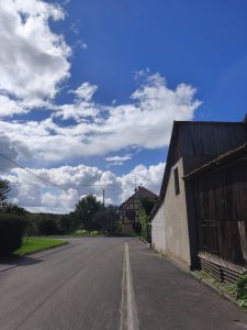 Die Strecke war aber richtig schön und irgendwann kam auch die Sonne raus. Wir sind ein Stück die Euro Velo Route 6 gefahren. Die ging an einem Kanal entlang, wirklich schön. Durch kleinere Orte und zum Glück nur ganz wenig Straßen mit Auto Verkehr. Mittag haben wir gar nicht wirklich gemacht. Ein paar Mal getrunken, einmal Nüsschen und Riegel. Wir waren ja eh spät dran und das fahren hat auch echt Spaß gemacht. Irgendwie konnte ich mich aber immer noch nicht so richtig drauf einlassen, das es jetzt wieder weiter ging und das Nomadenleben jetzt wieder weiter ging. Ich dachte immer noch ab und zu zurück an Freiburg und wie wohl ich mich da fühlte und überlebte ob ich vielleicht doch irgendwann, irgendwo an einem Ort ankommen könnte, wo ich mich wohl und zu Hause fühle. Dieses Gefühl kannte ich nicht so gut. Ich war bisher mein Leben lang ehr auf der Suche und konnte nie irgendwo wurzeln schlagen. Es zog mich bisher immer weg und plötzlich hatte ich so etwas wie das Gefühl gar nicht so wirklich reisen zu wollen. Das wurde natürlich durch das Wetter begünstigt und dadurch das sich meine ganze Situation ja wieder änderte. Ich war nicht mehr allein. Ich konnte nicht mehr einfach machen was ich will. Ich musste zum Beispiel wieder auf Campingplätze. Jeden Tag. Weil Dörte nicht wildcampen mochte. Und ich musste mich absprechen und Kompromisse eingehen. Ich musste mich erstmal wieder akklimatisieren. Ich meine damit gar nicht das ich das alles schlecht fand. Es hatte auch viel Vorteile. Man konnte sich Aufgaben teilen. Dörte suchte Campingplätze raus und plante die Route. Schnibbelte essen, während ich andere Dinge tat. Wir konnten uns ergänzen, aber ich musste halt erstmal wieder darauf klar kommen. Naja. Wird schon und ich wollte es ja auch so und ich hatte immer noch fest vor nach Süden zu fahren und den Winter in warmen Ländern zu verbringen. Auch wenn ich manchmal an kalte abende im Bauwagen vor dem knisternden Kamin zurück dachte. Jetzt waren wir Jedenfalls unterwegs und am Ende unserer Tagesetappe wurde es dann noch etwas bergig. Es gab also wieder eine kleine Herausforderung. Der erste Berg war schon Recht steil und Dörte musste ich eine Pause machen. Sie kämpfte sich dann aber tapfer durch. Wir merkten schnell das es wohl die Vogesen Ausläufer sein mussten, die nochmal ein bisschen Kraft erforderten. Aber nichts, was uns überforderte. Am Campingplatz haben wir die Nacht gebucht. Ich kenne ja die günstigen Campingplatz Preise aus Frankreich, aber 12,66 € für zwei Personen mit Zelt toppt echt noch einiges. Echt der Hammer. Wir haben dann gleich überlegt, ob wir noch eine Nach bleiben. Morgen soll es so 21 ° C warm sein. Übermorgen allerdings 26. Also Mal sehen. Wir wollten erstmal die Gegend erkunden und schauen wie uns die Innenstadt so gefällt und ob wir hier morgen ein bisschen rum hängen können. Aber erstmal haben wir haben dann die ganze Wäsche in die Sonne gehängt und das Zelt aufgestellt.