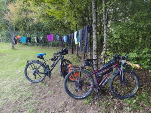 Die haben hinten in der Ecke einen Platz wo Wandersleute und Fahrradmenschen hin kommen. Leider war der Bereich etwas schräg. Aber es ging noch.