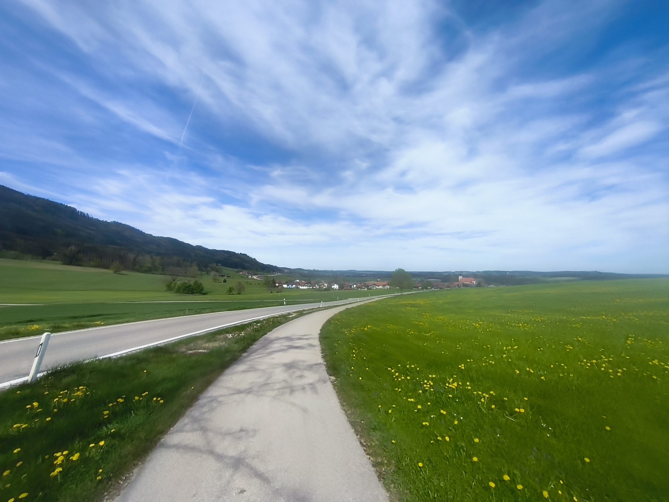 Ich habe am Campingplatz in Salzburg recht früh alles zusammengepackt und bin gegen 9:00 losgeworden. Heute waren ca. 40km geplant. Dabei hat sich gezeigt das 40km sehr stark davon abhängen, wo man sich bewegt. Irgendwie kommt es mir total schwer vor abzuschätzen wie weit man an einem Tag fahren kann. Langsam glaube ich das 40km die untere Grenze sind. Dann, wenn es sehr bergig ist. Das war der Großteil Heute nicht. Ich habe die Grenze nach Deutschland passiert ohne es zu merken. Hab es erst vermutet als ein Bäcker mit „Echten Bayrischen Backwaren“ geworben hat. Naja. Ich war gegen 13:00 am Cmpingplatz angekommen. Hatte erst noch überlegt zum Chiemsee urchzuziehen, weil es noch voll früh war, aber als ich nach Campingplätzen geschaut habe und die durchweg über 30€ für ein kleines Zelt wollen, bin ich hier geblieben. Außerdem hatte ich noch nicht mal gefrühstückt, zu wenig getrunken und die Sonne…