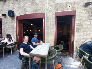 Auch wenn es anstrengend ist, ist es irgendwie auch ganz geil von Sonne und Hitze geweckt zu werden. Nach dem Aufstehen sind wir erstmal gemeinsam zum ICA gefahren und haben Aufschnitt und Brötchen geholt. Dazu einen leckeren Kakao. Zurück beim Frühstück haben wir erstmal die planung gemacht wie wir es mit Göteborg machen. Heute stand auf dem Plan, das ich eine neue Isomatte bekomme. Ich hatte bei einem Outdoor laden, der in der Innenstadt gleich 3 Filialen hat, online schon eine Matte von Expeed gesehen. Dörte und Sören haben nach dem Essen Wäsche gewaschen und ich habe mich fertig gemacht. Nachdem wir recherchiert hatten das eine Tageskarte für Göteborg 12€ kostet, hab ich beschlossen lieber mit dem Fahrrad rein zu fahren. Mal wieder ein bisschen me-time fand ich gut und unterwegs einfach Mal wieder entspannt Musik zu hören und mit mir zu sein gefiel mir wirklich gut. Dazu kam das ich mitm Fahrrad viel schneller war als die beiden mitm Bus, so das ich da angekommen schon Mal die 3 Filialen angesteuert habe und mir ein bisschen die Innenstadt angesehen. Als eine Nachricht von Dörte kam das sie angekommen sind, bin ich zum Laden gedüst. Dort habe ich die Matte kurz angetestet und dachte das die ganz cool sein könnte. Da es dieses Mal keine Selbst aufblasende war, hatte sie auch ein extrem kleines Packmaß. Die passt locker in mein drybag an der Achse und ich kann sogar noch zusätzlich Kram da mit reinstopfen. Nachdem wir aus dem Laden raus waren und noch in einem Lakritzladen waren, sind wir zu einem Hotdogstand gelaufen, weil Dörte immernoch hotdogs essen wollte und noch einen ausgeben wollte. Die Hotdogs waren leider mega enttäuschend. Es war nur eine homöopathische Menge Senf und Ketchup drauf und dazu kam das es ein kaltes Würstchen in einem kalten papp-brot war. Immerhin gab es eine Limo dazu. Im Anschluss haben wir nach einem entspannten Café gesucht, was wir nach einiger Zeit auch gefunden haben. Unterwegs hat Dörte sich noch ein Softeis geholt, was sie mit mir geteilt hat. Als wir ein Café mit entspanntem Innenhof gefunden hatten, sind wir dort erstmal mehrere Stunden geblieben. Wir haben mehrere Limos getrunken und ich habe Blog geschrieben und gemalt. Aktuell Male ich an einem Bild was ich für einen Mal Challenge mache.