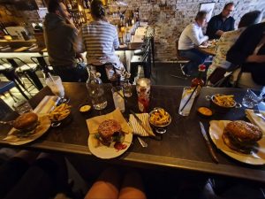 Nebenbei habe ich einen Test von meiner Spanisch App gemacht. Es war ein Test ob ich schon A1 Nevau habe. Da bin ich erstmal durchgefallen. Abends hat Sören uns zum Abschied feiern noch in einen Burgerladen eingeladen, wo es echt leckere Burger gab. Von da aus ging es wieder nach Hause. Während der Fahrt habe ich mich ein paar mal verfahren weil ich mit Handy in der Hand navigiert habe und nebenbei mit Jacky telefoniert habe.