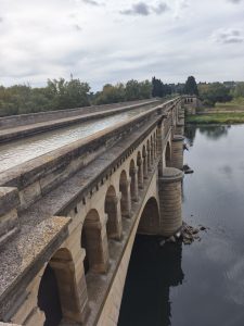 Dann ging es weiter am Kanal. Es war ein kleiner Kanal, der mich jetzt eine ganze Weile begleitet untergegs. Gar nicht schlecht. Zumindest nicht viele Höhenmeter. Der Kanal war scheinbar gern gesehen von kleinen Booten, die hier und da mal zu sehen waren. Es gab wieder Schiffshebeschleusen, wie ich sie schon kannte. An einer Stelle führte der Kanal wieder über einen Fluss. Ein bisschen wie in einer ausgedachten Welt in Minecraft. Menschen sind schon echt komisch und wenn die nötige Kohle da ist, werden die wildesten Sachen gebaut. An einer Überführung, wo der Kanal dann über den Fluss ging, hielt ich an es wimmelte überall von eidechsen, die sich in den brüchigen Steinen versteckten. Als ich ruhig stehen blieb, wimmelten sie um mich Rum und eine Babyeidechse war so neugierig, das ich sie sogar am Kopf berühren konnte. Hier ist auch mein Navi abgestürzt und hab mir eine ungewollte Pause. Ich sah dwn ganzen Menschen zu die sich die Schleusen ansahen. Es war schon ein bisschen surreal. Es waren ungefähr 10 Schleusen auf 1km und Touristen Fähren fuhren da durch. Ich denke das es bestimmt eine Stunde dauert um den Höhenunterschied zu passieren, den ich mir dem Fahrrad in 2 Minuten machte.