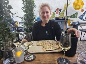 Heute haben wir erstmal lange ausgeschlafen. Danach bin ich zur Rezeption gelaufen und habe einen weiteren Tag auf dem Campingplatz gebucht. Dörte wollte gern mit mir Freiburg erkunden, weil ich ihr so viel von der Stadt vorgeschwärmt habe. Irgendwie fühlte ich mich hier inzwischen schon ein bisschen Zuhause und nach dem Ärzte Marathon habe ich gestern noch viel mehr von der schönen Altstadt gesehen und es gibt noch echt schöne Ecken, die ich bis vor kurzem noch nicht kannte. Also fuhren wir zuerst in die Altstadt. Der Plan war erstmal einen Kaffee trinken zu gehen. Dafür mussten wir natürlich um die Häuser fahren und nach einem schönen Ort suchen. Den haben wir dann in einer kleinen Nebenstraße hinter der Uni gefunden. Da war ein schön eingerichtetes Café, wo hauptsächlich Studenten waren. Es gab kleine tischchen mit Sonnensegeln davor und leckeren Cappuccino mit hafermilch. Wir waren beide ein bisschen wehmütig, das wir in einer Großstadt studiert haben. Eigentlich wäre es doch auch geil gewesen in einer kleinen schönen unistadt wie Freiburg Philosophie studiert zu haben und dieses entschleunigte Studentenleben zu leben. Es war eh ein sonniger Tag und alle saßen da, unterhielten sich und ich finde die meisten Studenten haben auch so einen coolen Kleidungsstil und man erkennt sie sofort. Wenn man in so einer großen Stadt wie Hamburg in einem Plattenbau unter 1000 anderen seine Pflichtveranstaltungen Durchballert und abends fertig nach Hause geht, verpasst man auch was sehr schönes. Das heißt nicht, das ich mein Studentenleben nicht in vollen Zügen genossen habe. Zumindest den Bachelor, aber es war auch schön in dem kleinen Café davon zu träumen wie es anders sein könnte. Als wir fertig waren wollten wir zu dem Outdoor laden. Dörte hatte ihre Ultralight Picknick Decke zu Hause vergessen und hat genau die jetzt sogar wieder bekommen. Ich habe mir ein Schlafsäcke Inlett gekauft, was ich dafür benutze, es über meine Isomatte zu ziehen. Quasi als Bettbezug. Kein Bock mehr in diesem blöden Schlafsäcke Inlett zu schlafen wo meine Füße nicht raus können. Ich hasse das. Wenn meine Füße nicht unter der Decke raus können, ist das echt scheiße. Außerdem wollte ich gern eine Zeltlampe haben, die ich oben anhängen kann, so das ich Licht zum Malen und lesen habe. Auch vorm Zelt und nicht immer mit Kopflampe rumlaufen muss. Einfach für die Gemütlichkeit. Aber die Lampen waren alle zu teuer. Also ließ ich sie im Laden. Nach dem Outdoor laden fuhren wir dann Limo kaufen und zum Kanal. Erstmal die Picknick Decke einweihen. Da haben wir dann ne ganze Weile gelegen. Dörte hat danach ein dickes Buch weggeschmissen, was sie angefangen hatte. Sie hatte sich eigentlich die ganze Zeit über den author und die Art wie er schrieb aufgeregt. Darum musste das in müll, damit auch kein anderer den Schrott lesen muss. Jetzt würde es auch langsam schon spät und ich wollte ihr gern mein Geburtstagsgeschenk geben. Sie hatte ja vor kurzem Geburtstag. Also lud ich sie zum Flammkuchen essen ein. Dazu gab es ein Glas guten Wein. Nachdem wir den leckeren Flammkuchen gegessen hatten, ging es dann zum Campingplatz. Damit ging wieder ein wunderschöner Tag zuende und irgendwie konnte ich mir gar nicht vorstellen wieder aus dieser wunderschönen Stadt wegzufahren.