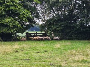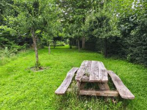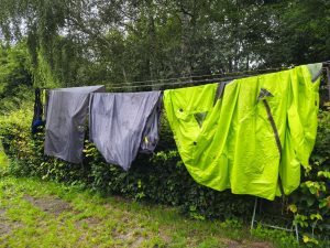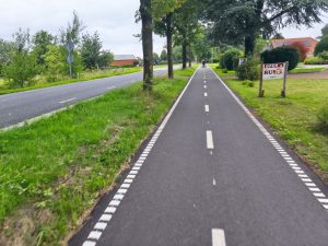 Nachdem ich endlich meine Karte auf’m Navi hatte ging es weiter. Weit war es nicht mehr und ich war früh dran. An der Grenze traf ich noch ein paar Typen die mit alten kleinen Mopeds unterwegs waren und auch Zelte und jede Menge gedöns dabei hatten. Kaum über die Grenze, traute ich meinen Augen kaum. Da war direkt am Wegrand ein riesiges hanffeld. Und ein Stück weiter noch eins. Zwar nur nutzhanf, aber ich musste erstmal ein paar Fotos machen. Das glaubt mir doch sonst keiner und sowas hab ich in den Ausmaßen auch noch nie gesehen. Ein Stück weiter war dann noch ein Feld mit Pflanzen mit richtigen Blüten dran. Krass. Bei der weiteren Strecke hatten die Fahrradwege sogar Streifen in der Mitte und waren wunderschön asphaltiert. Nicht wie in Deutschland, wo man mehr Wurzeln und Hügel hat als Fahrradweg. Dann kam ich bei dem Hof an. Arthur (der Gastgeber) und ich haben erstmal gequatscht und Tee getrunken. Nachdem ich meine Sachen getrocknet hatte und mein Zelt aufgebaut hatte, gab es auch schon essen. Selbstgemachte rustikale Pommes und Gemüse. Mega lecker. Danach wurde mir sein Hund vorgestellt und wir sind durch den Garten gelaufen, wo ich noch die restlichen Tiere kennengelernt habe und mir alles anschauen konnte. Das ist hier echt ein wunderschöner Fleck Erde. Wir haben auch gleich geschaut was morgen zu tun ist. Ein Stück von Arthurs Grundstück soll mit Steinen ausgelegt werden. Unsere Aufgabe ist es Steine anzureichern und kaputte auszusortieren. Klingt gut. Vielleicht werde ich meine Unterkunftsuche Mal auf wwoofen und workaway ausweiten. Nach der Runde haben wir noch gemeinsam abgewaschen. Ich wollte noch ein bisschen die letzten Sonnenstrahlen genießen, weil man tatsächlich mal wieder Himmel sehen konnte. Leider haben die stechviecher mich so genervt das ich nur noch geduscht hab und schnell ins Zelt gekrochen bin.
