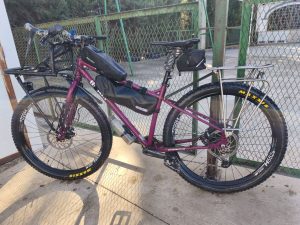 Danach das ganze Geraffel wieder dran. Dabei wurde ich von einem Mann angesprochen, dem ich geschafft habe zu erzählen wo ich hin will und wie meine Pläne sind. Er fand das richtig cool und hat auch gesagt das er das Fahrrad und die Komponenten richtig cool findet. Ich war schon kurz davor zu fragen ob er einen Platz in seinem Garten hat für ein Zelt, aber das war noch zu früh. Ich hatte schon mal zwischendurch geschaut und wie es aussieht wird es nicht einfach heute mit campen, weil wieder alles nur Landwirtschaft ist. Egal. Erstmal weiter.