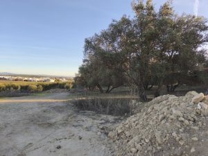 Heute war das fahren echt ne Quälerei und die Berge kamen mir noch viel schlimmer vor als normal. Ich hatte meinem Navi schon gesagt das es unbefestigte Straßen vermeiden soll. Irgedwann, als es schon langsam auf 17:00 zuging, dachte ich mir, das es vielleicht ne gute Idee ist, dem Navi wieder unbefestigte Straßen zu erlauben. Dann schickt es mich irgendwo in die pampa, wo ich bessere Möglichkeiten hab als an der Landstraße und tatsächlich. Ich wurde in einen Wald aus Olivenbäumen geschickt, der an eine riesige Sandkuhle grenzte. Die Bäume standen ungeordnet da Rum und es gab keinen Zaun. Das die Fläche wahrscheinlich irgendeinem Bauern gehört war mir klar, aber es fühlte sich ok an. Außerdem war ich in Sichtweite vom Dorf, so das ich da morgen früh direkt einen Kaffee holen und meine Vorräte auffüllen kann. Erst suchte ich einen Platz bei der Sandkuhle, aber da waren überall Dornenpflanzen, also stellte ich, nachdem sich ein paar Jungs mit cross Motorrädern und ein paar Kinder mit Böllern verzogen hatten, mein Zelt direkt zwischen die Olivenbäume und direkt an den Weg und lag mit einsetzen der Dunkelheit im Zelt.