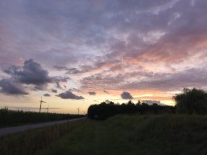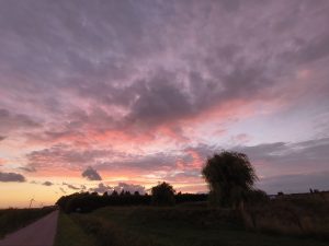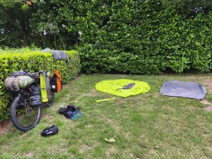 Auch heute morgen war das Wetter nicht besser, aber ich hatte heute die letzte Holland-Etappe vor. Darum war noch ein Tag warten keine Option. Es regnete und regnete. Es gab nur zwischendurch Mal ganz kurze pausen. In so einer dieser kleinen Pausen habe ich dann mein Zelt abgebaut und ins Badezimmer gebracht. In der Hoffnung das es da noch ein bisschen trocknet. War natürlich nur sehr begrenzt so, da es ja Menschen gibt die morgens duschen, was die luftfeuchtigkeit nicht wirklich reduziert. Die anderen beiden waren auch noch kaputt und haben keine Anstalten gemacht, die Zelte abzubauen. Erstmal entspannt frühstücken und fertig machen. Irgendwie versuche ich die ganze Zeit nicht zu sehr vom Regen runter ziehen zu lassen. Aber das ist schon echt scheiße. Zum Glück haben diese kleinen Höfe meist einen Gemeinschaftsraum wo man zumindest sitzen und oft auch im warmen sitzen kann. Ich konnte mich also in Ruhe fertig machen und alles im trockenen packen und vorbereiten. Als ich fertig war habe ich mich noch von den anderen verabschiedet und bin wieder losgefahren. Ich finde diese kurzen Bekanntschaften irgendwie manchmal echt gern. Man tauscht sich aus, lernt sich kennen und dann macht jeder irgendwie sein Ding weiter. Das jemand in die gleiche Richtung gefahren ist und man mal eine gemeinsame Etappe machen kann, gab es bisher glaub ich erst ein mal in Österreich. Aber das ist auch ok. Vielleicht kommt das ja noch und ich habe auch das Gefühl, das die ganzen Fahrradfahrer langsam aus ihren Löchern kommen. Und die wochenendreisenden bleiben sicher lieber zu Hause. Wer tut sich das auch freiwillig an, extra wo hin zu fahren um dann 2 Tage Regen zu genießen. Naja. Zumindest bei der Fahrt blieb es auch mal trocken. Unterwegs wieder das gleiche Bild wie so oft. Kanäle und schöne kleine Städtchen. Ein paar mal bin ich angehalten um Fotos zu machen, aber die meiste Zeit wollte ich einfach nur Strecke machen und so schnell es geht in den Süden. Unterwegs ist mir noch aufgefallen das alles irgendwie anders wirkte. Autos mit belgischem Kennzeichen und die Fahrradwege erfüllten nicht die hohen holländischen Standards. Dann sagte mein Handy noch das ich jetzt den belgischen Handydienst nutze. Am Bahnhof Essen, habe ich dann erstmal geschaut und es war echt wie ich dachte. Ich war kurz in Antwerpen, weil ich durch einen Zipfel Belgien gefahren bin. Das lag daran, das ich vorher nochmal durch Breda wollte. Lustig. Ich war also im kreis Antwerpen, ohne es zu merken. Ich bin dann aber Recht schnell weiter gefahren. Weil ich ja ankommen wollte. Aber das Wetter hatte sich noch Mal zum guten gewendet und es sah auch nicht aus, als wenn es sich das nochmal anders überlegt. Kurz vorm Campingplatz kam ich noch bei einer Birnenplantage vorbei, wo ich mir natürlich noch ein paar zum probieren mitnehmen musste. Auf dem Campingplatz habe ich mich heute sogar getraut erst ne Pause zu machen und dann das Zelt aufbauen. Das Wetter schien ja ausnahmsweise Mal kurz auf meiner Seite zu sein. Normal ist das immer höchste Priorität, weil es ja ständig regnet und ich dann zusehen muss in einem trockenen Moment schnell aufzubauen. Abends war ich dann ganz schön kaputt und habe noch Ben angeschrieben. Den hatte ich ja damals in der Tschechei kennengelernt. War genau so ein kurzes treffen. Wie ich vorhin beschrieben habe. Er kam so spät mit seinem Motorrad an, das die Rezeption schon nicht mehr auf hatte und hat dann einfach so da gepennt. Ich wusste, dass er in Brüssel wohnt und er hatte gesagt ich soll mich melden, wenn ich auf der Ecke bin. Er hatte genau einen Tag Zeit, weil er dann in Urlaub fährt. Das war genau der Sonntag. Also änderte ich meinen Plan um, und verabredete mich mit ihm. Richtig cool das er auch so spontan Zeit hat. Das bedeutet aber auch das ich morgen 80km fahren muss und am besten noch rechtzeitig loskommen, weil er mir gern ein bisschen Brüssel zeigen wollte. Die nicht touristischen coolen Ecken und Bars und Orte, wo keine Touristengruppen durchgelotst werden. Ich wollte ihn auch unbedingt Wiedersehen, also auch wenn wir den Abend nur aufm Sofa sitzen. Ich hatte also einen neuen Plan und war motiviert den umzusetzen. Abends bin ich nochmal bei den Hühnern vom Hof vorbeigegangen und die dachten ich füttere sie.