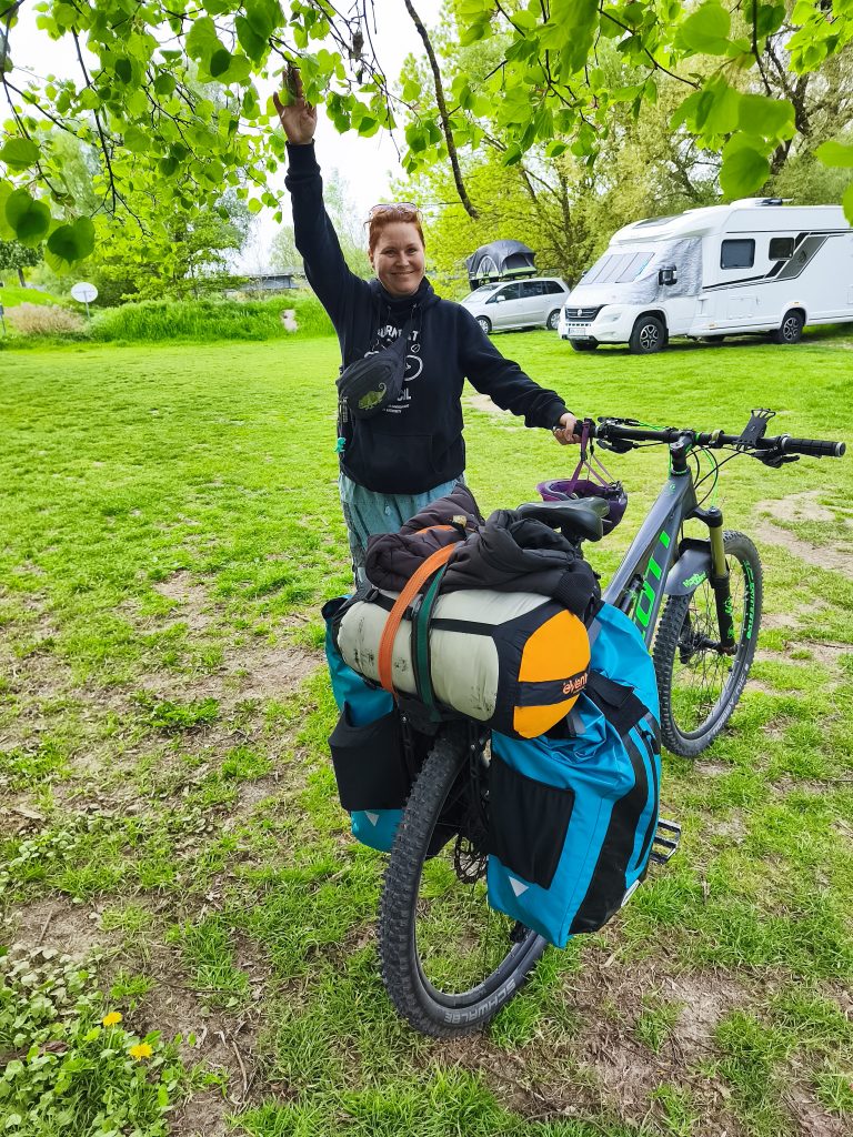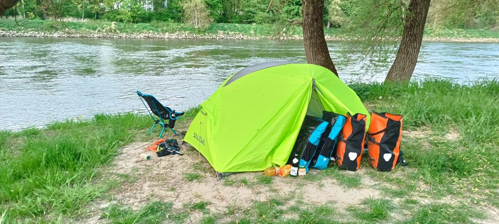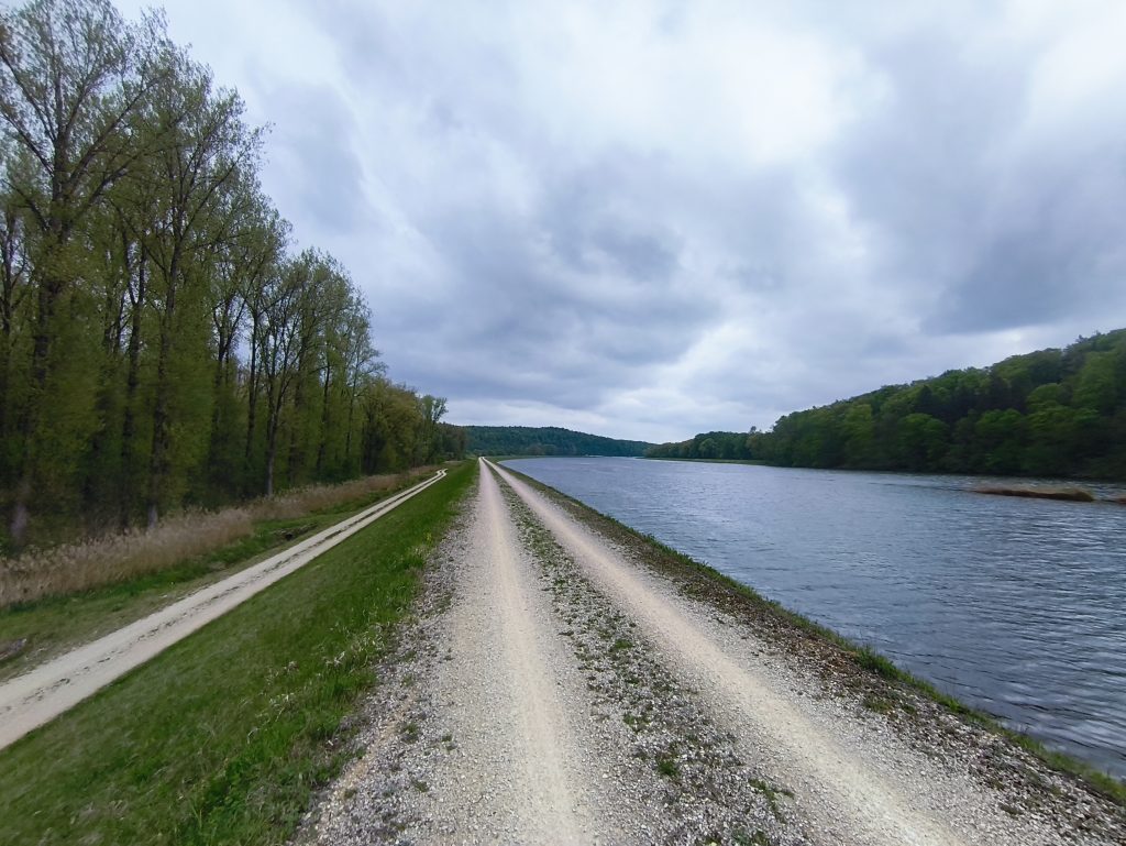 Die letzte Tour der ersten Etappe war nochmal eine der längeren. Es waren so um die 75km und ich bin von Donau-Wörth bis Vohburg gefahren. Ich habe am Abend zuvor mit Jacky abgesprochen, das wir uns auf einem Campingspot in Vohburg treffen, der Kostenlos ist. Sie wollte mit dem Auto und Übernachtungsgepäck zu dem Platz kommen. Am Morgen war es dann aber noch so kalt und ungemütlich, dass ich Jacky gefragt habe, ob ich die 100km bis zu Ihr durchziehen soll, damit wir uns einen entspannten Abend auf der Couch machen können. Sie hatte aber spontan die Idee, ihre Packliste abzuspecken, die Minimalistische Variante zu planen und mit dem Fahrrad die ca. 25km kommen wollte. Das fand ich natürlich mega. Ich packte also meinen Kram ein und fuhr los. In meiner Vorstellung ging es nur noch bergab bis Ingolstadt und dann noch ein paar km an der Donau lang. War natürlich nicht so. Es war besonders auf dem ersten Stück sehr bergig und es war wieder permanent dieser nervige Gegenwind, so das lange Stücke des Weges wirklich kein Spaß gemacht haben. Aber zwischendurch war es echt schön. Am liebsten ist mir immer Wald. Da ist es Windgeschützt, alles riecht gut und ich finde die Natur dort am schönsten. Nach vielen km am/auf dem Deich und der Quälerei mit dem scheiß Wind, kam mir dann kurz vor Vohburg Jacky grinsend entgegen mit ihrem Vollgepackten Fahrrad. Wir sind noch schnell zum Edeka gefahren, haben Bier, Wein und ein bisschen kram für Abendbrot und Frühstück eingekauft und uns einen schönen Abend gemacht. Nachdem wir noch einmal mit dem Zelt umgezogen sind, haben wir einen Platz direkt am Donauufer gehabt, wo wir dann auch die Zeltseite zum Wasser offengelassen haben. Der Platz war echt schön, mit Sanitäranlage und sogar Dusche und warm Wasser. Dazu noch mehrere Lagerfeuerstellen und einer schönen Wiese.