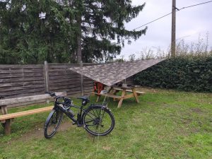 Als nächstes ging es in einen Outdoor laden. Ein sehr kleiner. Die hatten leider keinen passenden drybag fürs Zelt und an Zeltlampen hatten die wieder nur welche mit Batterien und eine mit Akku von einer französischen Marke von der ich noch nie was gehört habe. Ich hatte mich dazu entschieden die zu kaufen, wenn ich keine andere bekomme. Vom kunstladen aus sind wir dann zu einem kleinen Express Supermarkt gefahren und haben uns was zu essen geholt, was wir dann am Kanal gegessen haben. Der ganze Tag war begleitet von grauen Wolken aber es war trotzdem wunderschön, in dieser tollen Stadt rumzufahren und die Gegend zu erkunden. Als es langsam kalt wurde sind wir dann zurück gefahren. Das heißt wieder 11km und einen langgezogenen Berg hoch. Ich hatte schon gar kein Bock daran zu denken den Weg morgen allein um 23:00 zu fahren wenn ich Dörte weggebracht habe. Ich fand ihn dann aber doch nicht so nervig wie erwartet. Als wir ankamen hat es dann leicht angefangen zu nieseln und wir haben das Tarp aufgebaut, weil wir Lust hatten noch ein bisschen gemeinsam draußen zu sitzen und unseren letzten Abend zu genießen.