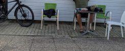 Heute gab es nach dem Aufstehen nur ein kurzes Frühstück. Wir waren wieder Recht spät dran und wollten zu einem Markt in der Stadt. Auch ein altes Marktgebäude, wo bis 12 Markt war. Vorher wollten wir noch schnell zum Aldi aber sind zu einem anderen gefahren als erwartet, weil Dörte mir die Koordinaten gegeben hatte. Den Aldi kannten wir noch gar nicht. Danach fuhren wir schnell zum kleinen Markt. Da angekommen ist Dörte erstmal in kacke getreten. Oder besser gesagt auf einen Zugeknoteten Gassibeutel, der dann aufgeplatzt ist. Wenn man den schon in die Gegend schmeißt, kann man doch auch gleich die Scheiße liegen lassen. Egal. Der Markt war dann auch nicht so cool. Wir sind dann weiter in die innenstadt. Dort ging dann die Suche nach einem Bäcker los. Wir hatten alles für Baguette dabei. Nur halt das Baguette nicht. Leider war Sonntag und alles hatte zu.wir haben noch einige Versuche unternommen. Bzw. Ich. Weil ich Stein Schere Papier verloren hatte musste ich zum Bäcker fahren den Dörte rausgesucht hatte. Es gab aber keinen mehr der auf hatte. Wir haben dann die kleine Altstadt noch ein bisschen erkundet, und dort war im Inneren der kleinen Burganlage ein Antonflohmarkt, der aber auch gerade im Anbau war, weil wir so spät waren. Dann haben wir die kleinen Restaurants abgechecked, aber haben auch dort kein gutes gefunden, um unseren Hunger zu bekämpfen. Als nächstes ging es an einer Straße höher gelegene Burganlage. Wir haben unsere Erkundungstour aber abgebrochen, weil Dörte auf Toilette musste. Auf dem Weg zum Campingplatz haben wir dann tatsächlich noch eine kleine Bäckerei gefunden die auf hatten und wir konnten uns jeder noch ein super leckeres Baguette kaufen. Nach dem wir dann einen kurzen Stopp auf dem Campingplatz gemacht haben, haben wir dann wieder den Park neben dem Campingplatz angesteuert. Da war auch gerade Flohmarkt und alles war voll Menschen. Wir haben den See einmal umrundet und wollten uns eigentlich nur noch irgendwo hinsetzen und essen. Das war aber gar nicht so einfach weil da so viel los war. Wir haben und also irgendwo hingesetzr wo ein Pärchen am tisch saß und haben da die Decke ausgebreitet und ich habe meine Hängematte aufgebaut. Ich habe dann in der Hängematte gelegen und ein bisschen Blog geschrieben. Das fällt mir in letzter Zeit irgendwie mega schwer, weil ich irgendwie nie die Zeit dafür finde und mir malen im Moment 1000 mal mehr Spaß macht. Es kommt mir oft schon lästig vor und ich komme gar nicht mehr so richtig hinterher. Aber ich werde es auf jeden Fall weiter machen. Ich denke das es sicher auch wieder besser wird, wenn ich den Anschluss wieder habe. Zur Zeit bin ich immer ca. 3 Tage hinterher. Aber ich Versuche aufzuholen. Als das Pärchen weg war, habe ich mich dann an Tisch gesetzt und gemalt. Nach einer ganzen Weile sind wir dann auf den Campingplatz zurück gefahren wo ich dann Desperados und Limo gekauft habe. Dann noch Tischtennisschläger, weil Dörte ja noch die Revanche wollte. Wir haben dann abwechselnd Tischtennis gespielt und gemalt. Bzw. Ich habe gemalt und Dörte gelesen. Der Campingplatz besitzer hatte Dörte gestern und heute schon Steffi genannt, weil sie ihn an Steffi Graf erinnerte. Zu mir hat er dann iegendwann noch André gesagt. Der war echt lustig drauf und man könnte gut mit ihm rumscherzen. Naja, Nach dem 2. Desperados hat Dörte (Steffi) dann auch 2 mal gegen mich gewonnen. Danach haben wir dann gekocht und dann drinnen im Aufenthaltsraum gechillt und alle Geräte noch Mal zum Laden an die Steckdose gehängt.