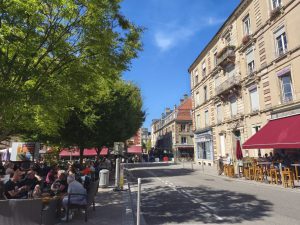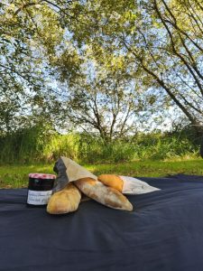 Heute gab es nach dem Aufstehen nur ein kurzes Frühstück. Wir waren wieder Recht spät dran und wollten zu einem Markt in der Stadt. Auch ein altes Marktgebäude, wo bis 12 Markt war. Vorher wollten wir noch schnell zum Aldi aber sind zu einem anderen gefahren als erwartet, weil Dörte mir die Koordinaten gegeben hatte. Den Aldi kannten wir noch gar nicht. Danach fuhren wir schnell zum kleinen Markt. Da angekommen ist Dörte erstmal in kacke getreten. Oder besser gesagt auf einen Zugeknoteten Gassibeutel, der dann aufgeplatzt ist. Wenn man den schon in die Gegend schmeißt, kann man doch auch gleich die Scheiße liegen lassen. Egal. Der Markt war dann auch nicht so cool. Wir sind dann weiter in die innenstadt. Dort ging dann die Suche nach einem Bäcker los. Wir hatten alles für Baguette dabei. Nur halt das Baguette nicht. Leider war Sonntag und alles hatte zu.wir haben noch einige Versuche unternommen. Bzw. Ich. Weil ich Stein Schere Papier verloren hatte musste ich zum Bäcker fahren den Dörte rausgesucht hatte. Es gab aber keinen mehr der auf hatte. Wir haben dann die kleine Altstadt noch ein bisschen erkundet, und dort war im Inneren der kleinen Burganlage ein Antonflohmarkt, der aber auch gerade im Anbau war, weil wir so spät waren. Dann haben wir die kleinen Restaurants abgechecked, aber haben auch dort kein gutes gefunden, um unseren Hunger zu bekämpfen. Als nächstes ging es an einer Straße höher gelegene Burganlage. Wir haben unsere Erkundungstour aber abgebrochen, weil Dörte auf Toilette musste. Auf dem Weg zum Campingplatz haben wir dann tatsächlich noch eine kleine Bäckerei gefunden die auf hatten und wir konnten uns jeder noch ein super leckeres Baguette kaufen. Nach dem wir dann einen kurzen Stopp auf dem Campingplatz gemacht haben, haben wir dann wieder den Park neben dem Campingplatz angesteuert. Da war auch gerade Flohmarkt und alles war voll Menschen. Wir haben den See einmal umrundet und wollten uns eigentlich nur noch irgendwo hinsetzen und essen. Das war aber gar nicht so einfach weil da so viel los war. Wir haben und also irgendwo hingesetzr wo ein Pärchen am tisch saß und haben da die Decke ausgebreitet und ich habe meine Hängematte aufgebaut. Ich habe dann in der Hängematte gelegen und ein bisschen Blog geschrieben. Das fällt mir in letzter Zeit irgendwie mega schwer, weil ich irgendwie nie die Zeit dafür finde und mir malen im Moment 1000 mal mehr Spaß macht. Es kommt mir oft schon lästig vor und ich komme gar nicht mehr so richtig hinterher. Aber ich werde es auf jeden Fall weiter machen. Ich denke das es sicher auch wieder besser wird, wenn ich den Anschluss wieder habe. Zur Zeit bin ich immer ca. 3 Tage hinterher. Aber ich Versuche aufzuholen. Als das Pärchen weg war, habe ich mich dann an Tisch gesetzt und gemalt. Nach einer ganzen Weile sind wir dann auf den Campingplatz zurück gefahren wo ich dann Desperados und Limo gekauft habe. Dann noch Tischtennisschläger, weil Dörte ja noch die Revanche wollte. Wir haben dann abwechselnd Tischtennis gespielt und gemalt. Bzw. Ich habe gemalt und Dörte gelesen. Der Campingplatz besitzer hatte Dörte gestern und heute schon Steffi genannt, weil sie ihn an Steffi Graf erinnerte. Zu mir hat er dann iegendwann noch André gesagt. Der war echt lustig drauf und man könnte gut mit ihm rumscherzen. Naja, Nach dem 2. Desperados hat Dörte (Steffi) dann auch 2 mal gegen mich gewonnen. Danach haben wir dann gekocht und dann drinnen im Aufenthaltsraum gechillt und alle Geräte noch Mal zum Laden an die Steckdose gehängt.