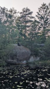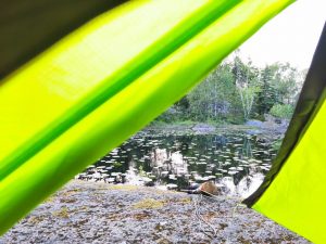 Der ganze Stress wurde aber mit einem schönen sonnigen Abend und einem der schönsten Lagerplätze die ich bisher gesehen habe belohnt. An einem See, der komplett mit Seerosen voll war, in einem Naturschutzgebiet gelegen. Zwischen Felsen haben wir unsere Zelte dann aufgebaut und uns essen gemacht.