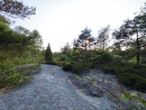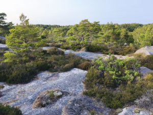 Dann kamen noch 2 Bikepacker aus Hannover mit den wir uns eine ganze Zeit unterhalten haben. Die haben ein bisschen entfernt auch ihr Zelt aufgebaut. Nach dem aufbauen haben wir auf einem Schild in Schwedisch gelesen, das man in Naturschutzgebieten nicht Zelten darf. Es hatte aber niemand mehr die Energie für einen Ausweichplan, also blieben wir einfach hier. Abends bin ich noch ein bisschen klettern gegangen und bin über die angrenzenden Felsen auf eine Hochebene gekommen, wo ich auch Elchkot gefunden habe und Wildschwein spuren gesehen habe. Die gegend wirkte total surreal. Kein anzeichen von Menschen, alles unberührt und verwildert. Es gab nicht Mal Trampelpfade oder so. Nachdem ich um den halben See Rum war, habe ich mich entschieden umzudrehen, weil es so unwegsam war und ich teilweise den Boden unter den Pflanzen nicht Mal sehen konnte. Das war ein tolles Gefühl das die Natur zu erkunden. Nach einer ganzen Weile habe ich es dann zurück zum shelter geschafft. Ich habe noch ein bisschen gemalt und wir sind dann ins Zelt gegangen mit dem Plan um 6 aufzustehen und früh abzubauen, da eine große Regenfront auf uns zu kommen soll. Abends haben wir dann sogar noch ganz nah Elche schreien gehört. Ich hatte kurz überlegt auf den Berg zu klettern und zu schauen ob ich welche sehe. Hell genug war es locker, aber ich wollte sie dann doch lieber in Frieden lassen. Ich war eh viel zu müde.