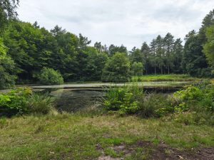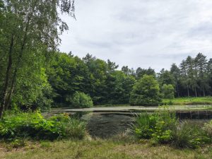 Am Morgen merkte ich sofort das heute das Wetter ein bisschen besser war. Ich merkte die Sonne auf dem Zelt und stand erstmal auf. Als erstes klärte ich die zweite Nacht ab und zahlte wieder im voraus. Ich freute mich sehr auf einen entspannten Tag ganz in Ruhe und so kam es dann auch. Erstmal in die Stadt und ein bisschen Verpflegung holen und dann zurück in den Wald. Mit malkram und essen saß ich echt lange am kleinen See und genoss einfach die Ruhe. Zwischendurch fuhr ich zurück auf den Campingplatz und machte einen kleinen Mittagschlaf und dann wieder den Wald erkunden und zum See. Erst als wieder der Regen einsetzte zog ich ins Zelt um. Ansonsten gibt’s den Tag nicht viel interessantes zu berichten. Auch mal schön, wenn einfach mal nichts passiert.