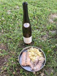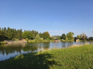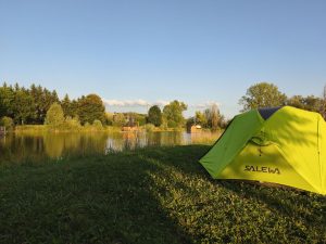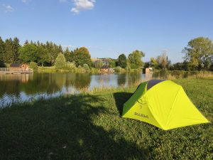 Nachdem ich dann wieder Lust bekam weiter zu fahren stieg ich auf mein viel leichteres Fahrrad und fuhr. Keine Musik, kein telefonieren oder Ablenkung. Einfach nur das surren der reifen und der Weg am Kanal. Irgendwann dachte ich dann über Abendessen nach und schaute auf mein Handy, durch welche Stadt ich noch komme. Es gab eine größere, wo auch ein Aldi war. Ich entschied mich aber für einen französischen Supermarkt. Is doch scheiße sein Geld immer nur den großen in den Schlund zu schmeißen. Also ging es zu einem „Market Ligny-En-Barrois“. Als ich da an kam, schien es so wie in anderen Städten. Es war ein Supermarkt wo man online seine Sachen aussucht und dann Mc-drive mäßig nur ranfährt um den stuff abzuholen. Das machen die Franzosen oft. Also doch 100m weiter zum Aldi… Scheiß drauf. Da hab ich mir dann Lachs geholt, Zitrone, 1kg Kartoffeln, weniger ging nicht, dann noch ne Zwiebel, eine Dose Bier und eine Flasche Wein, Schokoberliner und ein schokohörnchen. Drin hörte ich schon ein Pärchen mit 2 kleinen Kindern deutsch sprechen. Hab sie aber erstmal ignoriert, weil ich selber mit Jacky telefoniert hatte. Dann bezahlt und zum Fahrrad. In dem Moment kam auch das Pärchen raus. Scheinbar war ich und auch mein Fahrrad den aufgefallen. Mir war inzwischen deren massiver Anhänger aufgefallen. Als ich auf meinem Navi schaute wie ich zum Kanal komme und wo es weiter geht, fragte er mich, ob ich nach dem Campingplatz suche. Es gibt hier im ort eine und bei bar-le-duc noch eine kleinen günstigen. Von da kam ich gerade und ich sagte ihnen das ich mit einfach an der Strecke was suchen würde, aber bedankte mich für den Tipp. Es kam dann noch raus das die Kurzurlaub machten. 2 kleine Mädchen im Anhänger und die beiden mit Fahrrädern. Der hänger war selbst geschweißt, nach YouTube Vorlage und darin hatten die beiden Mädels Platz. Sie führen am liebsten, wenn die Kinder eh schlafen und waren in umgekehrte Richtung als ich unterwegs. Wir unterhielten uns noch ein bisschen. Dann fuhr ich weiter. Wieder völlig überladen zurück zum kanal. Der Weg wurde kleiner und Schotteriger und endete dann irgendwo an einem Feld. Ein Blick aufs Navi verriet mir, das ich hier eine Bundesstraße nehmen musste um wieder an den Kanal zurück zu kommen. Ich war aber schon auf der Suche nach einer Schlafmöglichkeit und musste jetzt auch noch umdrehen. Also zur Bundesstraße. Kein Bock auf den Stress. Kurz vor der Bundesstraße kam dann auf der rechten Seite ein Grundstück, wo mehrere Seen waren. Ich sah, dass dort auf Pontons verschiedene Häuser schwammen, die scheinbar gemietet werden konnten. Manche sahen aus wie kleine hexenhäuschen, manche wie fassaunas. Später sah ich das zu jedem dieser pontons ein kleines Paddelboot gehörte, mit dem man zum Ufer, oder zum Ponton fahren konnte. Naja. Meine Idee war dann, dass ich ja Mal fragen könnte, ob die ein kleines Stück Wiese über haben. Bevor ich jetzt auf die blöde Schnellstraße fahre und wer weiß wie weit fahre, um ein Stück Wiese zu finden, wollte ich wenigstens Mal den Versuch machen. Vor 3 Tagen wäre das noch nicht möglich gewesen. Naja. Ich ging also in die Bar, in der gerade Leute saßen und schnackten und fragte den Typ, der da stand, wie es aussieht. Ob sie Platz für ein kleines Zelt haben. Der sagte mir direkt nein. Ich sagte ihm das ich mit dem Fahrrad da bin und nur ein Stückchen Wiese brauche. Da er nur französisch Sprach, war es nicht so einfach. Als er Velo hörte und dann mein Fahrrad sah, ging er dann doch um die Ecke und sprach scheinbar mit seiner Frau. Er gab 15 in seinen Taschenrechner ein und hielt ihn mir hin. Ich zeigte ihm einen Daumen und er zeigte mir den Sanitärbereich. Ne ziemlich große saubere Dusche und schöne gepflegte Toiletten. Dann versuchte er mir zu erklären, das mein Fahrrad im Fahrradschuppen eingeschlossen werden könnte. Mega lieb. Ich bezahlte mit Karte und baute mein Zelt auf einer mega schönen Wiese zwischen den Seen wo die Pontons schwammen auf. Dann machte ich mein Bier auf und kochte mit meine Lachsfilets mit Kartoffeln und Zwiebel. Als ich dann Abends das Fahrrad reinschieben wollte, zeigte der Platzbesitzer auf meinen Hinterreifen. Er war Platt. Hatte ich mich also doch nicht getäuscht, als ich beim fahren so ein schwammiges Gefühl hatte. Er fragte mich irgendwas auf französisch, was ich natürlich nicht verstand. Aus dem Kontext wirkte es aber so, also ob er den Reifen flicken wollte. Ich gab in meinen Übersetzer ein, dass ich den Reifen morgen früh reparieren werde und er zeigte mir einen Daumen. Wieder ein Platter reifen. Vielleicht denke ich doch noch Mal über tubeless nach. Das nervt ja hart. Aber zuerst brauche ich hinten einen neuen mantel, weil der inzwischen schon wieder auf ist. Egal. Ich ging zum Zelt, kochte, wusch ab, duschte und schrieb Blog. Das war wieder echt ein geiler Tag und ich fühle mich immer Freier.