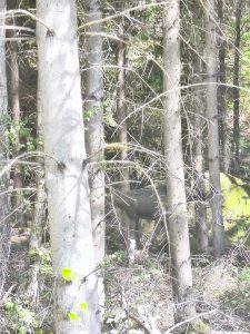 Dann saß ich da und es war noch früh am Tag. Also hab ich mir einen Platz für die Nacht gesucht und bin schon mal da hin gefahren. Auf dem Weg war nur ein einziger Supermarkt bei dem ich noch ein bisschen essen und trinken und bonschi für den Abend gekauft habe. Es war eine Strecke durch die komplette Einöde und als ich so die Straße lang fuhr, schaut mich aus ca. 10m Entfernung etwas riesiges an. Ein Elch!!! Mega cool und auch etwas unheimlich. Ich habe keine guten Fotos hinbekommen und dann ist er auch wieder weiter gezogen.