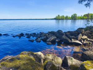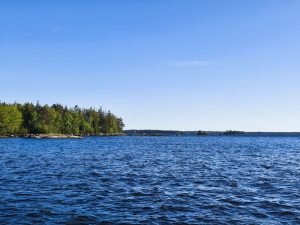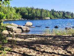 Ich hatte mir eine kurze Tour vorgenommen. Habe mir eine Badestelle rausgesucht, weil es erstmal der letzte richtig warme Tag sein sollte. Die knapp 30 km waren schnell gemacht und ich kam an. Auf einer Infotafel am See stand das die Forscher sich nicht einig sind wie dieser See entstanden ist. Entweder durch einen Meteroiteneinschlag, oder durch Vulkanische Aktivität. Für den Meteroiten spricht ein in Schweden sehr seltenes Gestein, was an dem Rand einer Insel im See zu finden ist. Dieses Gestein entsteht nur durch sehr hohen Druck. Für den Vulkan spricht die Schichtung der Erde bei diesem See. Ich bin für Meteroit, weil ich das cooler finde. Da der See an der tiefsten Stelle über 40m tief ist, sind mir ab den Oberschenkeln auch fast die Füße abgefroren, als ich versucht habe zu baden. Also wieder raus.