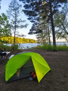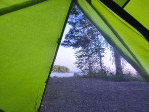 Als die meisten Menschen weg waren hab ich dann mein Zelt am Wasser aufgebaut. Nicht zu dicht am Sand, aber dicht genug das ich auf den See kuchen konnte. Am Ende konnte ich sogar noch einen schönen Sonnenuntergang sehen.