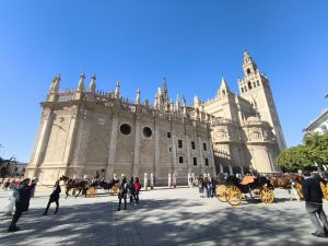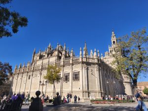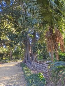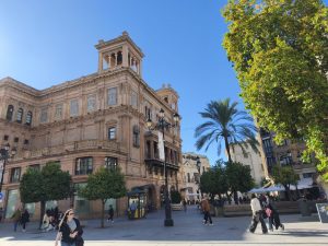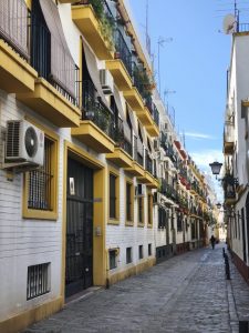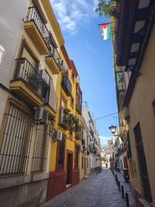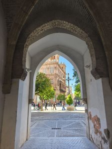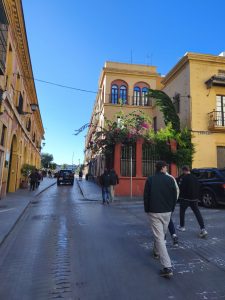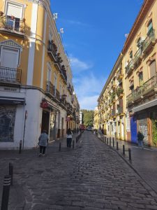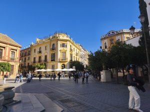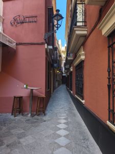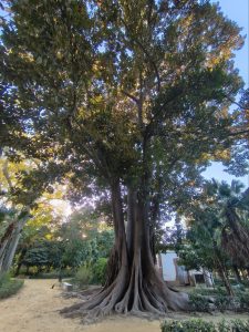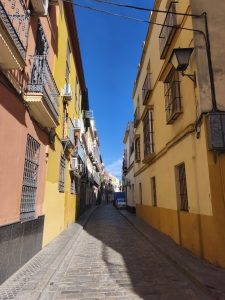 Ich hatte ursprünglich 3 Nächte in einem Hostel gebucht um mir in aller Ruhe Sevilla anzusehen und hier schön Zeit zu verbringen. Am ersten Tag bin ich sehr viel rumgelaufen. Ich hab keine Ahnung wie viele Kilometer, aber ich bin wieder ein bisschen von Maps, ein bisschen von meiner Neugierde getrieben durch die engen Gassen gelaufen. Es gab hier so unfassbar schöne Ecken, auch wenn ich die dicht aneinander gebauten Gebäude auf Dauer etwas beengend finde. Dafür gab’s aber auch echt schöne „Lichtungen“ und Plätze im stadtjungel. Außerdem gab es echt tolle Parks mit diesen Riesenbäumen mit mächtigen Wurzeln. Man konnte gefühlt in jede Richtung einfach laufen und es gab überall etwas zu entdecken. Am nächsten Tag kam Corinna dann auch nach Sevilla, weil sie am 29. Ihren Flieger nach Köln bekommen muss. Der Tag war eigentlich hauptsächlich von Rumlaufen, chillen und Essen geprägt. Sie kam an dem Tag an, aber ihr Hunger war trotzdem heftig. Am 3. Tag habe ich ganz entspannt gemacht hab Wäsche in einem Wäschecenter gewaschen und mich dann Nachmittags mit Corinna getroffen. Sie war schon dabei Dinge für den Flug zu regeln und suchte nach einem großen Karton für ihr Fahrrad. Ich hatte mich inzwischen dafür entschieden noch 2 weitere Nächte zu buchen. Leider im gleichen Hostel und im gleichen Zimmer. Ich hätte auch in Corinnas gehen können, weil ich ja wusste das es cool ist, oder in ein anderes Zimmer. Grund dieser Überlegungen ist ein sehr komischer Zimmernachbar. Der sitzt den ganzen Tag im dunklen Zimmer und schaut irgendwelche Tierdokus oder so bei YouTube. Das Problem ist, das er jede Nacht irgendwelche komischen Geräusche macht. Von schnarchen, über ständiges seufzen/reden/stöhnen, bis zu Grunzen, oder Hustenanfälle. Es gibt echt nervige Menschen.