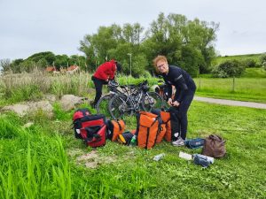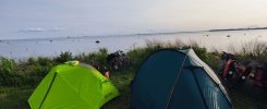 Wir haben direkt Vormittags schon auf dem Campingplatz eingecheckt und die Zelte aufgebaut. Heute hatten wir mehrere Dinge vor. Wäsche waschen, einkaufen, duschen, Geräte laden, … Als erstes sind wir in die Stadt gefahren. Ich wollte zum Baumarkt und Schleifpapier kaufen um meine Bremse nochmal zu überreden wieder zu funktionieren. Sören wollte in einen Sportladen um sich ein stabileren drybag zu kaufen um essen zu transportieren und ich brauchte einen Waschlappen. Deshalb wollten wir noch in verschiedene Sportläden. Nachdem wir in der Stadt angekommen sind, während ich wieder nur in kleinen Gängen fahren konnte, sind wir erstmal in den Baumarkt. Bzw. Ich allein. Dörte brauchte auch noch 2 schrauben, weil ihr Ständer abgeruckelt war und die Schrauben komplett verbogen waren. Ich habe mein Schleifpapier bekommen. Und…naja… Dieses Mal konnte ich nicht an den hübschen Mora Messern vorbeigehen, ohne eins mitzunehmen.