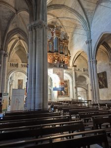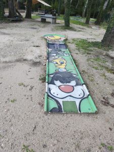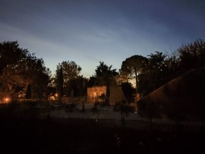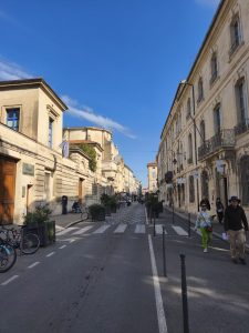 Wir fuhren wieder raus aus der Stadt und es wurde wieder ländlicher. Als nächstes machten wir halt ab einer alten Wasserstelle, wo früher die Menschen ihre Wäsche wuschen. Dort habe ich erstmal mein Gesicht und meine cappi nassgemacht, weil es echt heiß war. Auf dem weiteren Weg ist mir etwas aufgefallen, das es hier Stierkampfarenen gibt. Ich wusste gar nicht das sie sowas in Südfrankreich auch machen und später stellte sich raus, das das wohl hier die einzige Region in Frankreich ist, wo sie Stierkämpfe machen. Naja. Kurz vor unserem Ziel haben wir dann noch eine sehr seltsame Frucht am Boden liegen gesehen die niemand von uns kannte. Es sah aus wie ein Gehirn und der dazugehörige Baum heißt Milchorangen Baum. Es gibt kein Mensch oder Tier was diese Frucht essen kann und das einzige Tier was sie Mal gegessen hat, ist wohl ausgestorben. So überlebte der Baum nur noch, weil Menschen ihn als lebenden zaun gepflanzt haben. Wir sind dann in eine kleine Stadt gefahren wo es einen Campingplatz gibt. Jetzt waren wir an der Côte d’Azur.