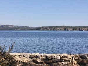 Und weit und breit kein mensch. Das Geröll auf dem Weg war Teilweise so groß, das man nicht drumrum fahren konnte also bin ich einfach langsam drüber gefahren. Als die Gegend wieder ein bisschen grüner wurde und ich um Gestrüpp rumfahren musste, kam mir ein anderer radreisender entgegen. Erst haben wir uns nur gegrüßt und sind aneinander vorbeigefahren, aber dann sind wir beide umgedreht und haben ein bisschen gequatscht. Auch ein echt cooler Typ, der allerdings auf dem Weg zurück nach Deutschland war, weil er einen Termin hat. Nach ein paar weiteren km kam ich dann auch wieder in die Zivilisation. Es war ganz schön heiß und ich hab mich ein bisschen über mich geärgert, das ich kein Wasser mehr eingepackt hatte. Ich hatte also nur 800ml. Nachdem ich die Wüste hinter mir gelassen hatte, kam ich in immer Touristischere Gegenden. Wahrscheinlich, weil es jetzt richtig an der Küste lang ging.