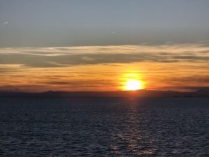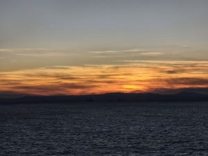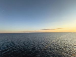 Heute bin ich früh aufgestanden, weil ich ja rechtzeitig für die Fähre fertig sein müsste. Die Nacht war nicht so geil weil dieses mal mehr Leute da waren und auch mehrere Schnarcher dabei waren. Ansonsten wären die Leute auch so recht unruhig. Das Licht im Raum ging immer sofort an, wenn irgendwer sich außerhalb vom Bett bewegt hat. Also auch wenn Mal jemand einen Arm oder so unter dem Bettvorhang rausstreckte. Ich war 3 oder 4 mal richtig wach und hatte Probleme wieder einzuschlafen. Sicher auch weil ich innerlich unruhig war, weil ich immer Angst habe die Fähre zu verpassen.