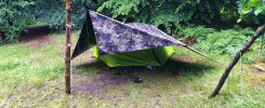 Die Nacht war extrem scheiße. Ich war mehr wach als ich geschlafen habe. Bin immer wieder aufgewacht und hörte, wie von meinem Tarp Bäche neben meinem Zelt auf den Boden Platschten. Wenigstens haben sich so die Seen auf dem Tarp entleert. Meine Angst war ja das das Wasser sich auf dem tarp sammelt und dann noch irgendwas schlimmes passiert. Zum Glück war es die Nacht im Wald Recht Windstill und alles hat gehalten. Mir ist immer etwas unwohl so ein großes „Segel“ in der Nacht allein zu lassen. Besonders, wenn es an meinem Zelt befestigt ist. Aber es ging ja nicht anders. Zumindest war alles trocken geblieben.