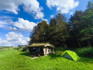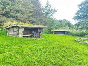 Der shelter war echt schön und kaum war ich angekommen und habe mich eingerichtet, kam noch ein Bikepacker. Lustigerweise hatte der den gleichen Rahmen wie ich. Auch ein surly Ogre. Nur ca. 10 Jahre Älter und eine andere Größe. Auch die Reifen hatte er in 2,35 Zoll. Nur statt 27,5 hatte er 29er. Und er hatte eine Rohloff Schaltung. Trotzdem sah das Bike komplett anders aus als meins. Wir haben und dann noch eine ganze Weile Unterhalten. Er kommt aus Holland und ist auf dem weg zum Nordkap. Er meinte das es ihm in die andere Richtung zu warm ist. Ich freue mich schon auf die Wärme. Am Abend hab ich mir vom kleinen Laden noch Bier geholt. Hier schmeckt das Bier auch wieder wie Bier. Aber für eine Packung Kekse und 2 Bier hab ich auch mal eben knapp 10€ ausgegeben. Ich sag mir immer das ich dafür keinen Campingplatz bezahlen muss. Aber ist ja auch egal. Ich genieße noch den schönen sonnigen, und windigen Abend. Zumal man hier im shelter auch Recht windgeschützt ist. Und dann wir im Zelt geschlafen, weil die dänen irgendwie immer shelter bauen, die für mein Zelt etwas zu flach sind. Der andere Bikepacker schläft im shelter ohne Zelt oder Mückennetz. Er meint das sich in den Sheltern für ihm citronella Kerzen bewährt haben. Er hat sich noch für die Warnung vor den Minimücken bedankt. Mal schauen was er morgen berichtet. Ach ja, noch eine positive Entwicklung! Meine Fahrrad Versicherung hat jetzt die knapp 700€ für die Reparatur meiner Schaltung übernommen.