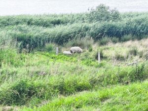 Nachdem ich völlig fertig aufgestanden bin habe ich erstmal das tarp abgebaut. Der Tag sollte ja sonnig werden. Dann habe ich meinen Kram zusammengerafft, weil die minimücken wieder in Schaaren Angriffen. Ich habe alles nur übers Fahrrad geschmissen und bin zu den sheltern gefahren. Das Zelt sollte noch ein bisschen stehen und trocknen. Bei den sheltern hab ich mir erstmal Kaffee gemacht. Nach ein paar Unterhaltungen mit den leuten da, wurde mir auch klar, warum alles im Wald voll Zelte war und warum fast alle shelter voll waren. Die haben einen Naturkurs gemacht, wo sie ruhe in der Natur tankten und Outdoor Kram machten. Ich habe mir erstmal eine Wäscheleine gespannt und mein tarp aufgehängt und Socken und was sonst noch so nass war. Dann frühstück und eine Katzenwäsche im Klo, was zum Glück fließendes Wasser und ein großes Edelstahl Waschbecken hatte.