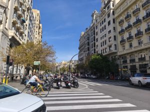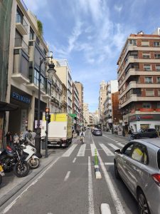 Heute konnte ich wieder richtig Ausgeschlafen, was aber nicht sehr lange war. Ich war gegen kurz vor 8 schon ausgeschlafen und habe mich fit gefühlt. Hab ja auch gestern früh geschlafen. Heute ist ein echt schöner entspannter Tag. Das einzige was mich heute antreibt ist meine Lust Valencia zu entdecken. Keine Termine und kein Stress. Ich war früher wach als gewohnt und der kleine Kiosk auf dem Campingplatz machte erst um 9 auf. Eigentlich hatte ich vor mir da was leckeres zum Frühstück zu holen. Ich hab also erstmal gechillt und Sachen für Valencia gepackt. Dieses mal habe ich nur zur Sicherheit auch meine Badehose eingepackt. Schließlich komme ich ja am Strand vorbei. Ich habe dann um 9 eine zweite Nacht gebucht und bin mit dem Fahrrad nach Valencia gefahren. Heute mit Licht fiel mir auf das es einen richtig guten Fahrradweg in die Stadt gab und auch in der Stadt gab es quasi keine Straße, ohne separaten Fahrradweg. Es gab meistens sogar einen zweispurigen Radweg der separat zur Straße geführt war, so das man kaum Berührungspunkte mit Autos hatte. Die Stadt war wunderschön und sogar ohne zwielichtigen Außenbezirk. Als erstes ging es entlang an einem lang gezogenen Park mit viel Wasser und futuristischen Gebäuden. Nicht diese hässlichen „modernen“ Dinger, sondern welche mit geschwungenen Fassaden und schönen Formen, als wenn man versucht Architektur mit abstrakter Kunst zu mischen. Danach ging es uber Fahrradstraßen in den Stadtkern. Hier sah jedes Gebäude anders aus. Alte verschnörkelte Fassaden, alle in unterschiedlichen Farben. Die ganze innen-Stadt beschränkte sich nicht auf eine Touristenmeile, wo alles stressig ist, wie in anderen Städten, sondern die ganze Stadt war schön. An jeder Ecke gab es was zu sehen und ich kam aus dem Fotografieren gar nicht mehr raus. Im Gegensatz zu Barcelona, wo ich mich gestresst, unwohl und nicht sicher gefühlt habe, war es hier genau das Gegenteil. Ich fühlte mich pudelwohl, hatte nicht einmal das Gefühl das irgendwelche Taschendiebe oder Trickbetrüger an meinen Kram wollen und alles war entspannt und ruhig, obwohl es eine große Stadt war. Die Leute wirkten entspannt und es war einfach nur ein schönes Gefühl hier durch die Straßen zu fahren. Als erstes habe ich einen comicladen angesteuert. Ich wollte gern ein neues Comic haben. Dieses mal auf spanisch und nicht auf Katalanisch. Es gab sooooo viele Comics. Aber ich hatte ja Recht enge Vorgaben. Darum fielen die meisten schon mal weg. Ich wollte etwas was schön gezeichnet ist, wodurch viele grafic novels wegfiele, weil die den schwerpunkt ehr auf Gesellschaftliche oder politische Themen legen und die Zeichnungen oft einfach gehalten sind. Dann wollte ich auf keinen Fall einen Manga, weil ich die nicht mag. Die sind mir zu überzogen und zu kindlich gezeichnet. Außerdem wollte ich ein Buch in kleinem Format und mit softcover, weil es in die Fahrradtasche passen soll. Dadurch fielen viele schöne kunstvolle Comics Weg, weil die oft Hardcover und in A4 Format oder größer sind. Nach langem suchen habe ich eins gefunden. Das heißt Bones und ist ganz hübsch gemacht. Als ich aus dem Comic laden wieder raus war, ging es zu einem Comic Café. Da gab’s aber keine Comics, sondern das hieß einfach so. Die Karte und die Wände waren mir Sprechblasen. Ich saß da eine ganze Weile und beobachtete die Leute. Alles wirkte so bunt und entspannt. An einem Haus wehte eine Regenbogenflagge und man hörte leise Musik. Leute saßen an Tischen an der Straße, tranken Bier und unterhielten sich. Ein Mann lief Rum und wollte Leute Bücher verkaufen und genoss es sichtlich, sich mit den Leuten zu unterhalten. Er wurde nicht weggeschickt, wie man es sonst oft kennt, sondern die Besitzer von den Cafés kannten ihn scheinbar sogar und schmerzten mit ihm rum. Ich fühlte mich einfach pudelwohl.