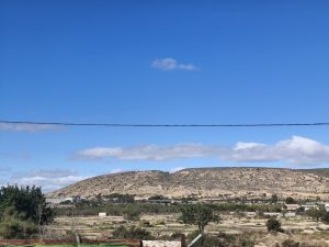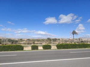Heute morgen bin ich etwas zerquetscht aufgewacht, weil ich mehrere Male in der Nacht aufgewacht bin. Ich habe mir Müsli und Kaffee gemacht und meinen Kram ein- und alles zusammengepackt. Dann ging es los. Wir sind eigentlich auf echt guten wegen gefahren. Zumindest für spanische Verhältnisse. Trotzdem war das vorwärtskommen nicht gerade einfach. Wir hatten extrem gegenwind. Durchgehend, so das es eigentlich nicht möglich war über 10kmh zu fahren das ist nicht nur nervig und anstrengend gewesen, sondern auch super zeitaufwändig. Es ging viele kleine asphaltierte Straßen endlang und das Landschaftsbild war hauptsächlich durch Landwirtschaft geprägt. Es gab dieses mal wenig Orangen dafür die ersten Dattelpalmen, wo wir natürlich angehalten sind. Ich habe die erstmal probiert und die waren geil und zuckersüß. Ansonsten gab es Oliven, ein paar Kräuter und bei einem Feld sind wir angehalten um zu schauen was es ist. Es waren Artischocken. Ich wusste gar nicht, das Artischocken im Herbst und den Winter über wachsen und im kommenden Frühjahr/Sommer geerntet werden können. Wieder was gelernt. Während unserer ganzen Etappe waren die ganze Zeit die Berge im Hintergrund zu sehen. Spanien ist echt ein bergiges Land. Später sind wir noch durch eine Stadt mit extrem vielen Palmen gekommen. Die Gegend sah schon immer mehr arabisch angehaucht aus. unsere Mittagspause haben wir dann auf einem Lidl Parkplatz gemacht. Danach ging es wieder über entspannte Wege. Nur am Ende müssten wir noch ein Stück über stressige schmale Straßen, wo Autos eng überholt haben. Wir haben uns wieder eine gemeinsame Parzelle geholt und ich konnte mal wieder in einem Hängemattensetup pennen. An einer Palme und einem Baum. Danach haben wir nur noch Abendbrot auf Campingplatz in der verlassenen Gemeinschaftsecke gegessen. Hier gab es zumindest Tische und Stühle. Danach nur noch Duschen und in der Hängematte Blog schreiben.