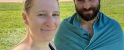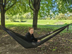 Nach dem späten Frühstück haben wir noch ganz langsam gemacht. Ich habe heute endlich Mal geschafft bei einem Anwalt wegen dieser Erbsache anzurufen scheinbar ist es gar nicht so gefährlich ein Erbe anzunehmen, wenn man nicht weiß ob es Schulden sind. Man kann dann einfach eine erbinsolvenz anmelden, die dann losgelöst von den sonstigen privaten finanziellen Dingen gehandelt wird. Dafür müssen allerdings alle erben diese Insolvenz beantragen und die eine Mieterbin kenne ich ja nicht. Mal schaurn. Nach dem Telefonat mit dem Anwalt haben wir uns dann fertig gemacht. Heute wollten wir nicht auf dem Campingplatz gämmeln sondern am Kanal. Dort haben wir auf der anderen Seite des Mini Deichs einen Sportplatz gesehen wo auch Sitzbänke und Bäume waren. Dörte ist erstmal in die Hängematte gegangen und ich hab am Tisch gemalt. Irgendwann hab ich noch Limos geholt und nachdem wir noch kurz Rum gehangen haben sind wir dann wieder zum Campingplatz. Dörte hat während meines einkaufes den Campingplatz angeschrieben, wo wir nächsten Tag hin wollen. Der liegt an einem Badesee, ideal für angekündigte 29°C. Da war fürs Wochenende alles ausgebucht und deshalb hat sie denen geschrieben. In der Antwort haben die gesagt das dort wohl ein Event ist und man deshalb nicht mehr buchen kann. Aber wenn wir reservieren wollten würde das per Telefon mit ner Kreditkarte gehen. Das kam uns dann aber irgendwie komisch vor und darum wollten wir das nicht nachen. Später hat die Dame dann noch mal angerufen und gesagt, es ist okay, wir können auch vor Ort bezahlen. Perfekt, also keinen Stress für den nächsten Tag.