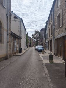 Egal. Jetzt mussten wir erstmal einkaufen. Das Sortiment bei Intermarché spricht uns immer nicht so an, aber wir haben ein bisschen Vorräte aufgefüllt und mittag für den Weg gekauft. Und was zum gleich essen. Das haben wir dann draußen auf einer Treppe gegessen. Dann ging es weiter. Ich war irgendwie müde und kaputt und bin heute irgendwie überhaupt nicht in die Gänge gekommen. Auserdem hat uns Dijon auch in diese Richtung wieder mit Hässlichkeit überrascht. Radwege gab es quasi nicht, hässliche Wohngegenden und wir waren dauernd von nervigen Autos umgeben. Das Wetter war aber wieder okay. Am Anfang kalt, dann Sonne. Bis zum Ende dann bewölkt, aber warm. Irgendwann haben wir dann Dijon tatsächlich endlich hinter uns gelassen.